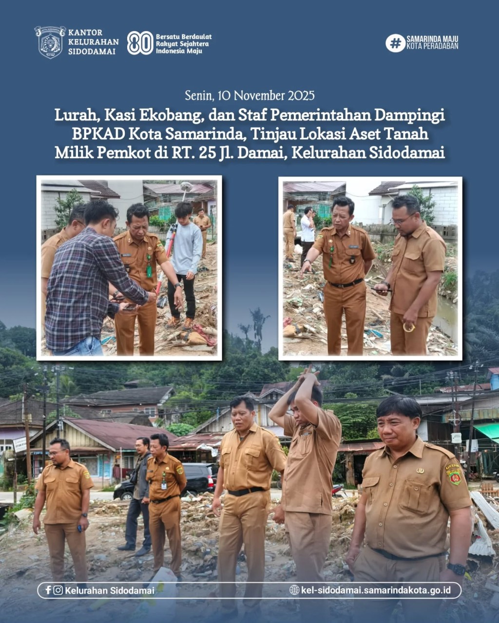Lurah Sidodamai Dampingi Tim BPKAD Kota Samarinda Tinjau Aset Tanah Pemkot di RT. 25 November 11, 2025 Lurah Sidodamai Dampingi Tim BPKAD Kota Samarinda Tinjau Aset Tanah Pemkot di RT. 25 Samarinda, 10 November 2025 – Dalam rangka m...